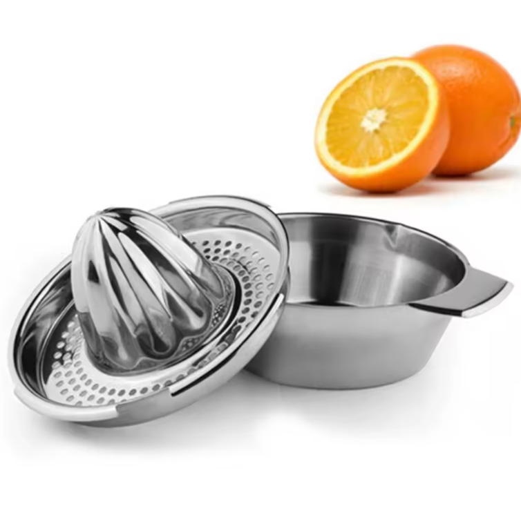 Ręczna Wyciskarka do Owoców ze Stali Nierdzewnej Prasa do Cytrusów z Sitkiem Zamień każdą cytrynę w porcję świeżego, zdrowego soku! Ta nowoczesna, ręczna wyciskarka to niezastąpione narzędzie w każdej kuchni — idealna do pomarańczy, cytryn, limonek i innych owoców.